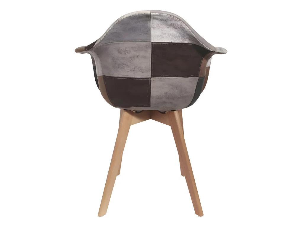Piétement en bois massif finition naturelle. Revêtement assise et dossier en tissu aspect cuir, motif patchwork. Hauteur d’assise : 47 cm.