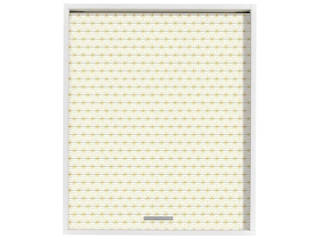 Meuble Elément haut de Cuisine coloris Blanc à poser sur le plan de travail ou à suspendre à mur. Rideau imprimé