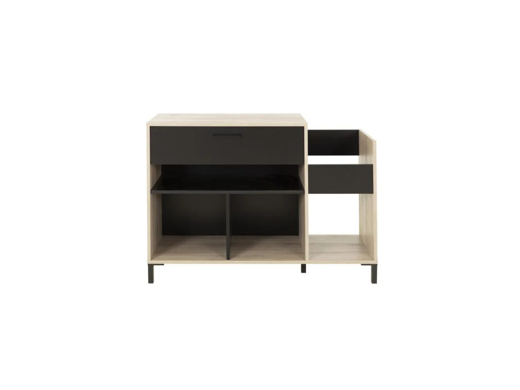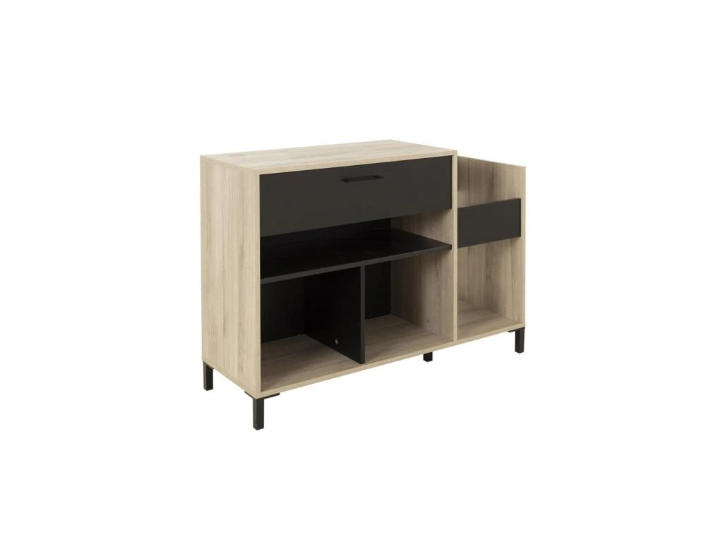 Vous apprĂ©cierez le mariage du revĂȘtement ChĂȘne clair au veinage plus vrai que nature et des Ă©lĂ©ments teinte noire qui promettent un rendu contemporain au goĂ»t du jour, le design original fait de ce meuble de rangement un atout dans toutes les piĂšces de la maison.