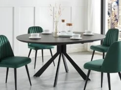 Table à Manger Extensible LIBSY – 6 à 8 Couverts – Céramique Et Métal – Noir