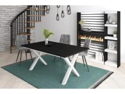 Table à Manger SALVA – 6 Couverts – MDF Laqué – Blanc Et Anthracite