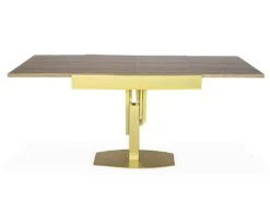 Table Design Carrée Extensible 180cm Mealane Pied Central Or Et Bois Sonoma