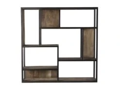 ALIDA – Étagère Murale Carrée Marron 80x80cm 4 Niveaux 3 Niches Bois Mahogany Structure Métal Noir
