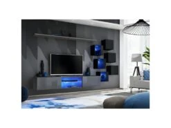 Ensemble Meuble Salon Mural SWITCH XVIII Design, Coloris Blanc Brillant Et Chêne Wotan.