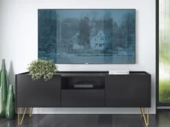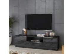 Meuble TV Avec 4 Tiroirs Et 1 étagère En Bois D’acacia Et Métal – Naturel Clair Et Noir – ADIXIA