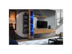 Ensemble Meubles De Salon Collection RAMOS. Coloris Chêne Et Noir Super Mat. LED Intégrées.