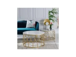 Tables Basses Gigognes En Verre Trempé Et Acier Inoxydable – Transparent Et Cuivré – BASERI
