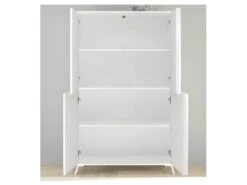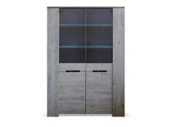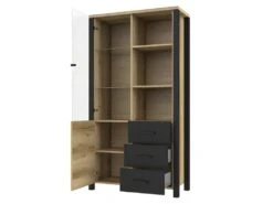 Vitrine Large Design Collection DARWIN. Couleur Chêne Clair Et Noir. 2 Portes, 3 Tiroirs, 3 Niches