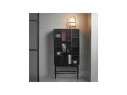Vitrine Suspendue Grise Avec 1 Porte Vitrée Et éclairage LED Inclus. Collection SWITCH.