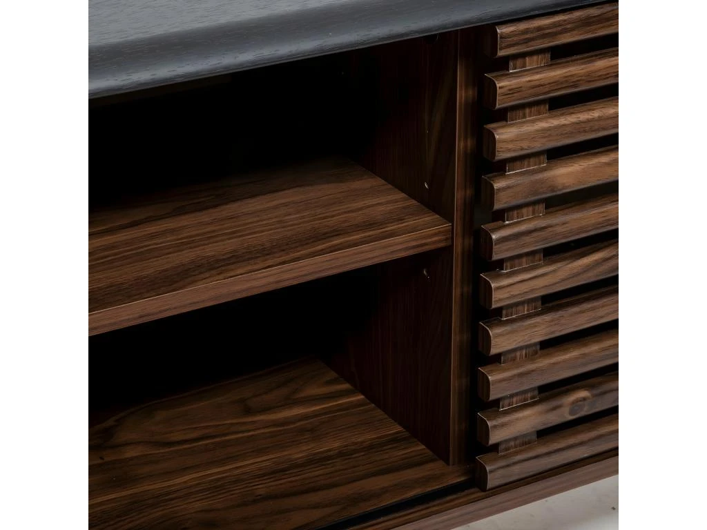 Meuble TV en Bois Effet Noyer 140 x 39.5 x 53 cm – Dimensions : L. 140 x P. 39,5 x H. 54 cm –