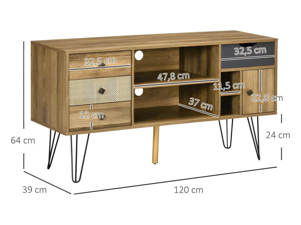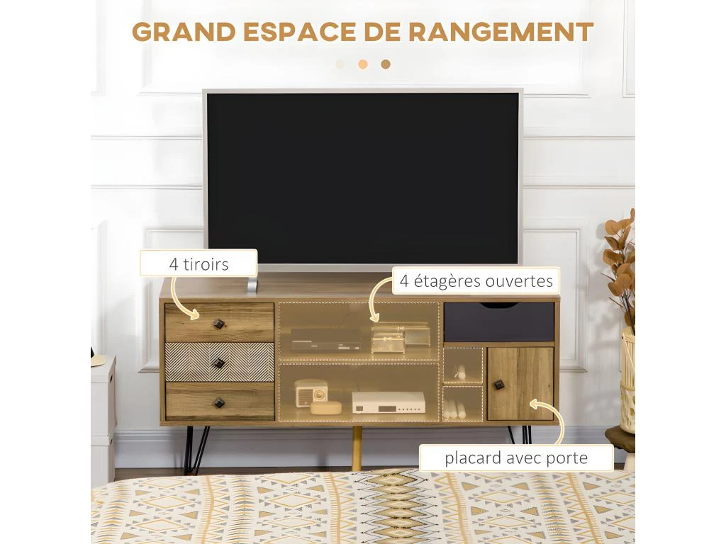 – Multi-rangement : 4 tiroirs, 4 niches, porte, grand plateau vous permettant d’installer convenablement tout vatre matériel vidéo et audio