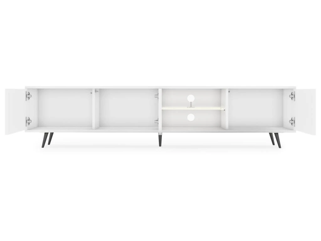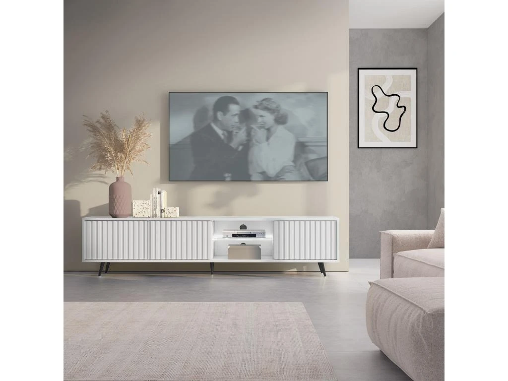 Meuble Tv Led 175 Cm Blanc, Façades à Lamelles Et Pieds Noirs – Selsey Bello