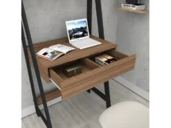 Composition Secrétaire Chêne Blanchi Massif Et Laqué, 2 Tiroirs, 1 Abattant, 1 Relevant – 108L X 38P