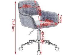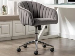 Chaise De Bureau – Velours – Gris – Hauteur Réglable – TOSILI