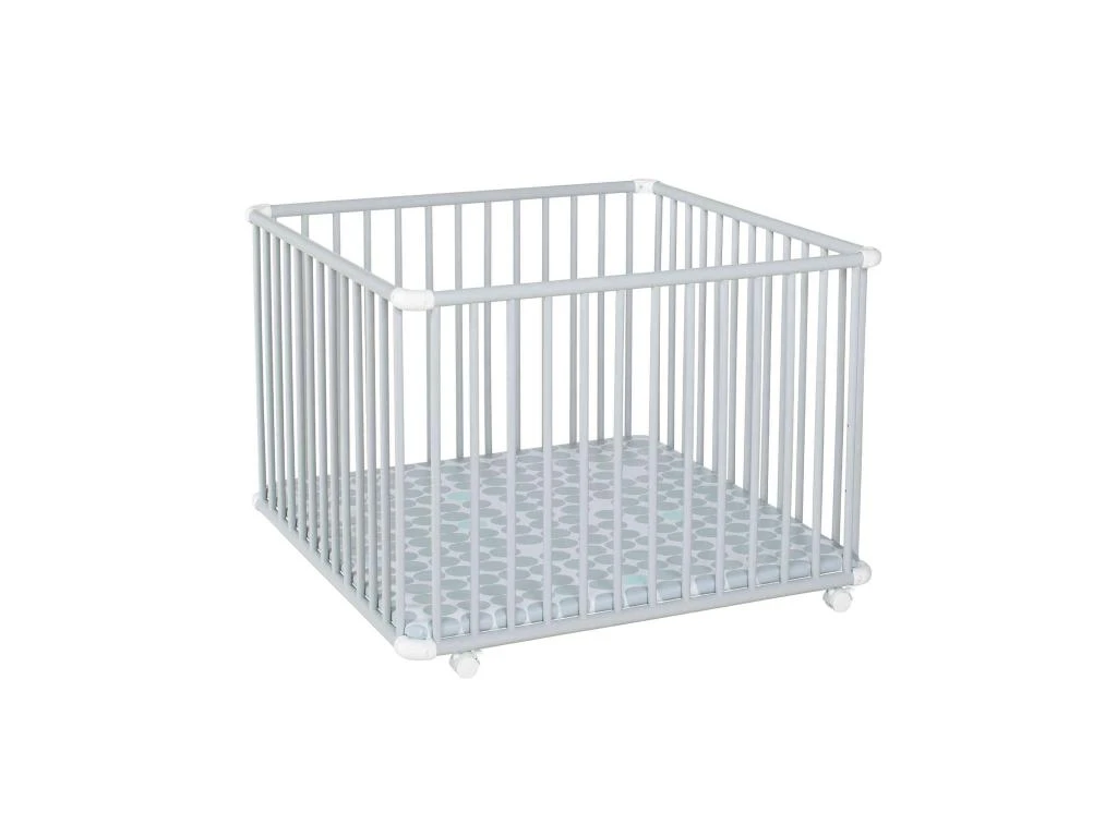 Parc bébé en bois à roulettes Belami fond à pois 97×97 cm – Geuther. Ce parc bébé offre une aire de jeu sécurisée à votre bébé. Son sommier réglable en hauteur permet d’installer bébé avec facilité. Il sera ainsi confortablement installé pour s’éveiller. Ses roulettes, équipées de freins, sont facilement maniables.