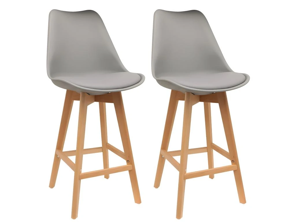 PiĂštement en bois massif coloris naturel. Coque assise et dossier en polypropylĂšne gris. Coussin assise en simili coloris gris.