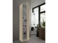 Armoire 2 Portes Battantes Blanc/ChĂȘne – TOZA – L 90 X L 52 X H 200 Cm