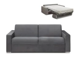 Canapé 4 Places Convertible Express En Velours CALITO – Anthracite – Couchage 160 Cm – Matelas 18 Cm