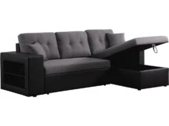 Canapé D’angle (droit) Panoramique SENSA, Couleur Gris Foncé, 5 Places Avec Coffre De Rangement