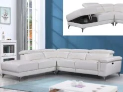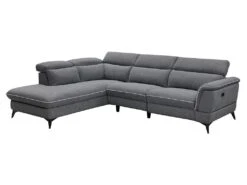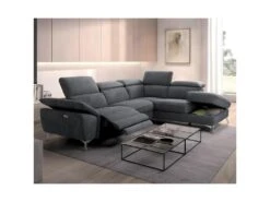 Canapé D’angle En Cuir Italien De Luxe 5 Places BOTERO, Avec Relax électrique, Noir, Angle Gauche