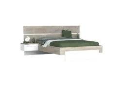 Chambre Complète Irina Couleur Chêne Et Blanc : Lit 180×200 Cm + Armoire + Commode + Chevets.