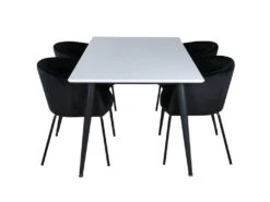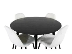 DippĂ115BLBL Ensemble Table, Table Noir Et 4 Polar Fluff Chaises Teddy Blanc.