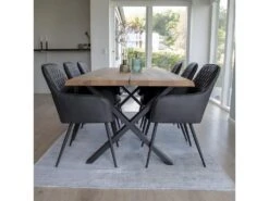 Tony Salle Ă Manger, 1 Table Ă Manger Et 6 Chaises, Gris FoncĂ© Et ChĂȘne.
