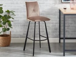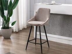 Lot De 2 Tabourets De Bar – Velours Et MĂ©tal – Taupe – INDILANE