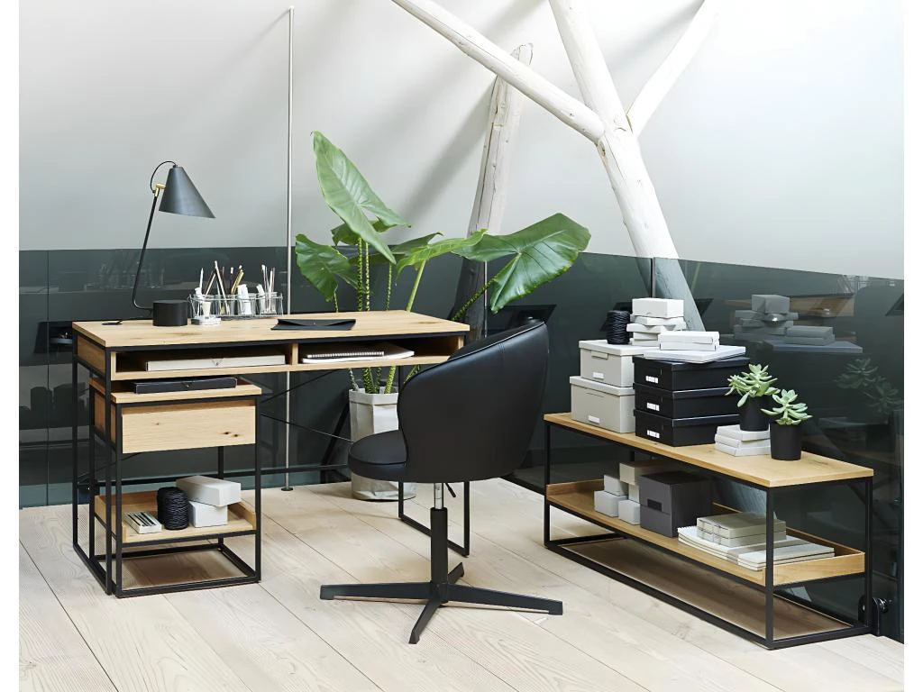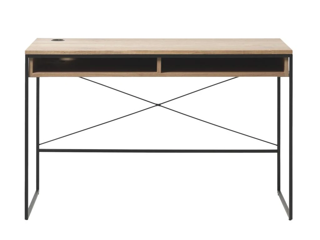 Bureau Nittedal Avec étagère Intégrée à 2 Niveaux 75 X 120 X 60 Cm Effet Chêne Patiné [en.casa]