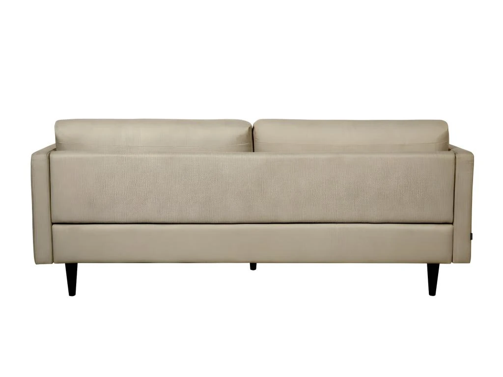 Des lignes droites, 2 coussins moelleux et un tissu ultra doux rehaussé par des pieds en bois foncé : c’est la recette (qui fonctionne toujours) de Romie.