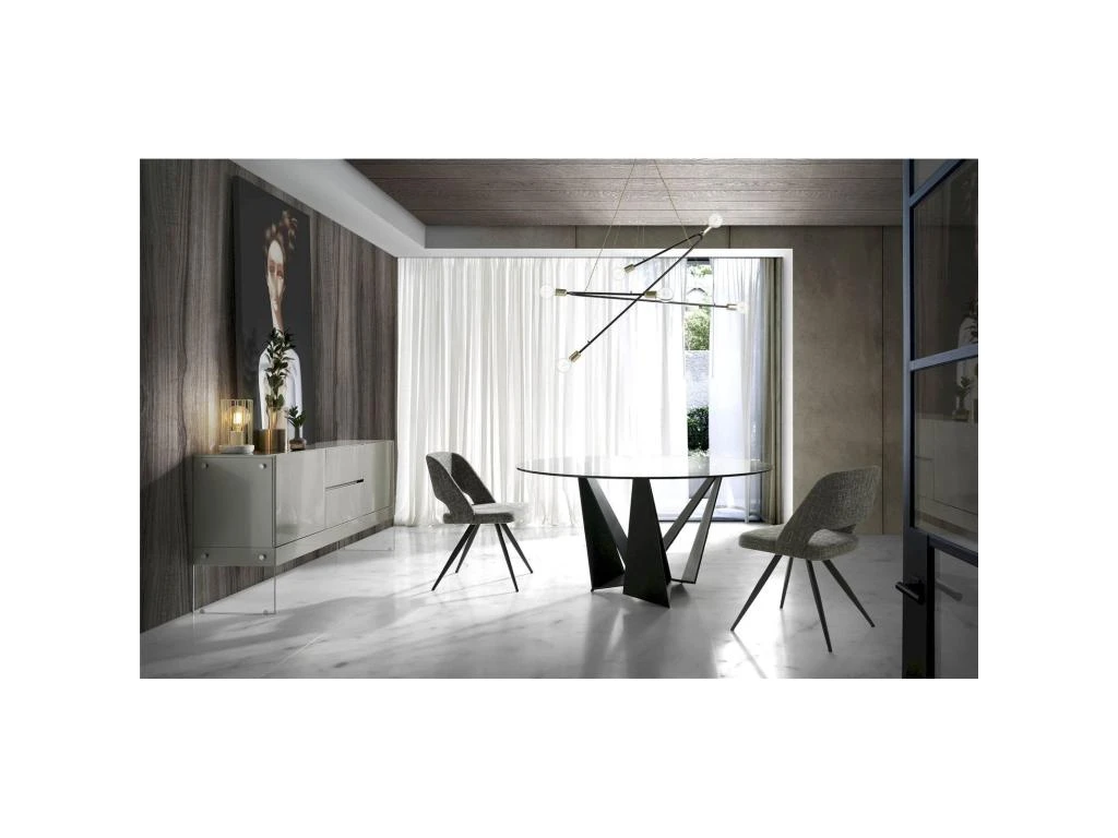 Matière : couvercle : verre transparent de 12 mm avec procédé de trempe thermique à 635 degrés et bords polis, jambe : acier inoxydable laqué en noir mat ,