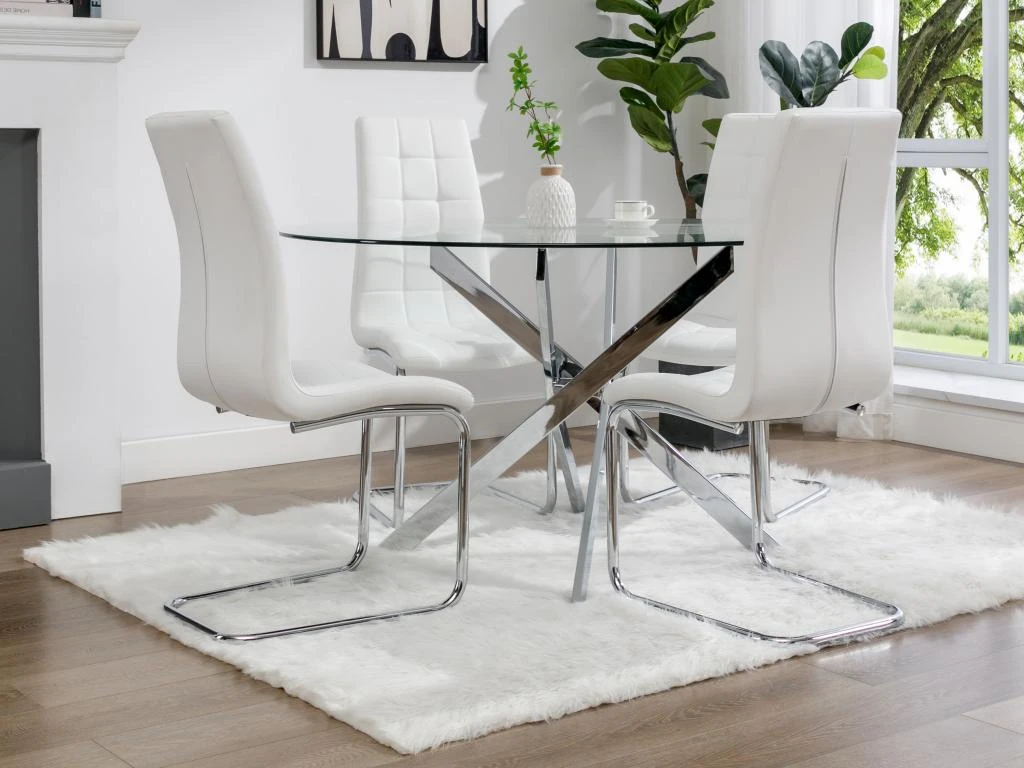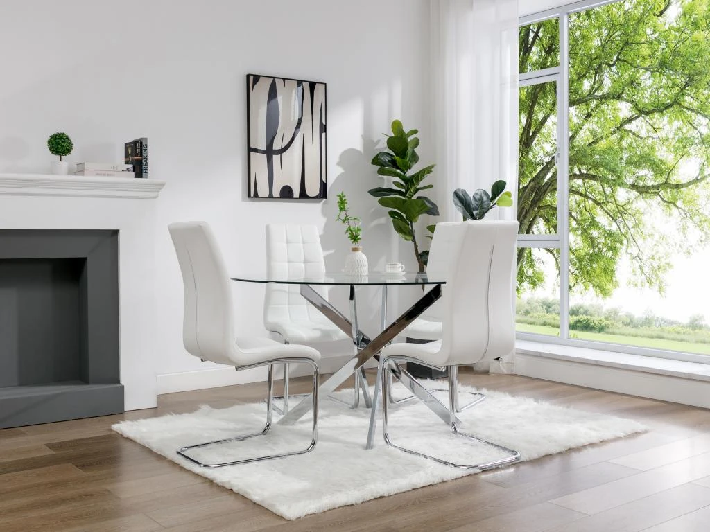 La collection COSIMA apporte de l’allure à votre séjour avec ses lignes élégantes et son association de couleurs neutres. Ultra design grâce à l’alliance de son plateau en verre trempé et de ses pieds croisés en métal chromé, vous ne pourrez plus vous en passer !