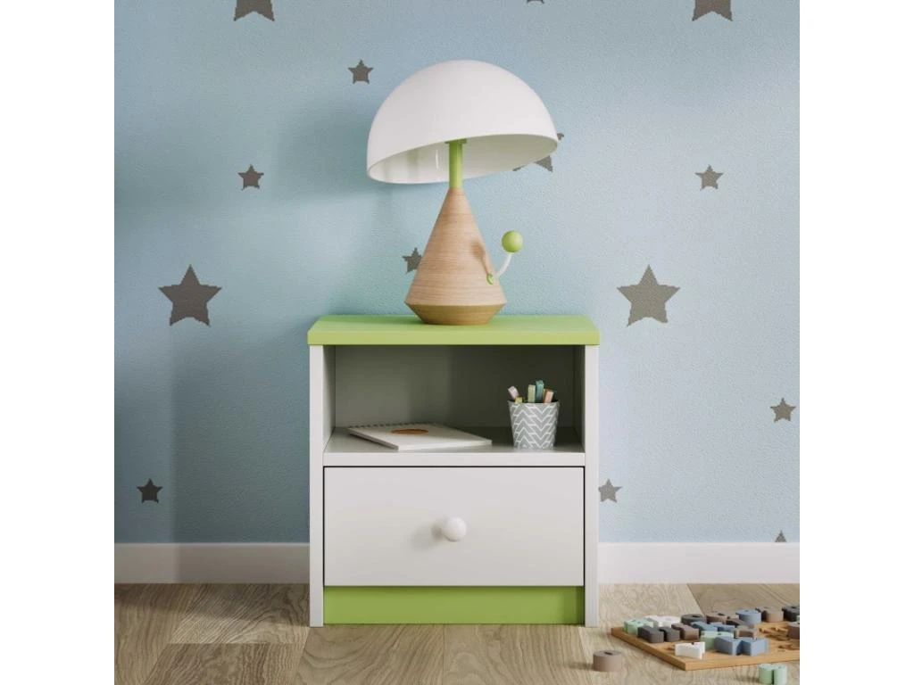 Lit Avec Chevets 160 X 200 Cm – 2 Tiroirs – Avec LEDs – Coloris : Blanc Et Naturel – FRANCOLI