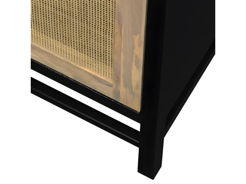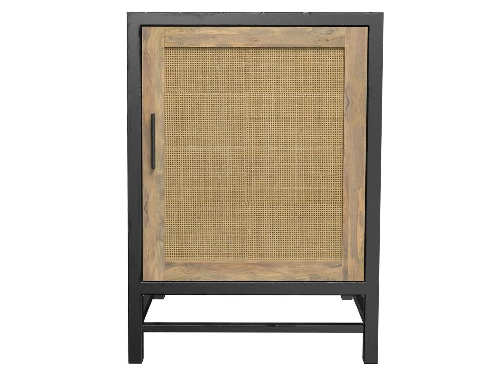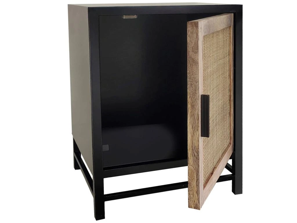 Mis en lumière, le bois de manguier qui encadre sa porte (40 x 47 cm) vous plaira par ses stries élégantes et sa teinte aux riches nuances. Vous apprécierez également le travail de cannage qui l’agrémente de sa trame dynamique. Le détail d’une poignée métallique vient compléter le graphisme de votre prochain coup de cœur.