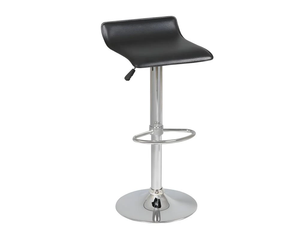 Base et pied en acier finition chromée. Assise en PVC. Garnissage en mousse polypropylène. Assise réglable en hauteur grâce à une manette. Suspension à gaz. Charge maximale conseillée : 120kg.