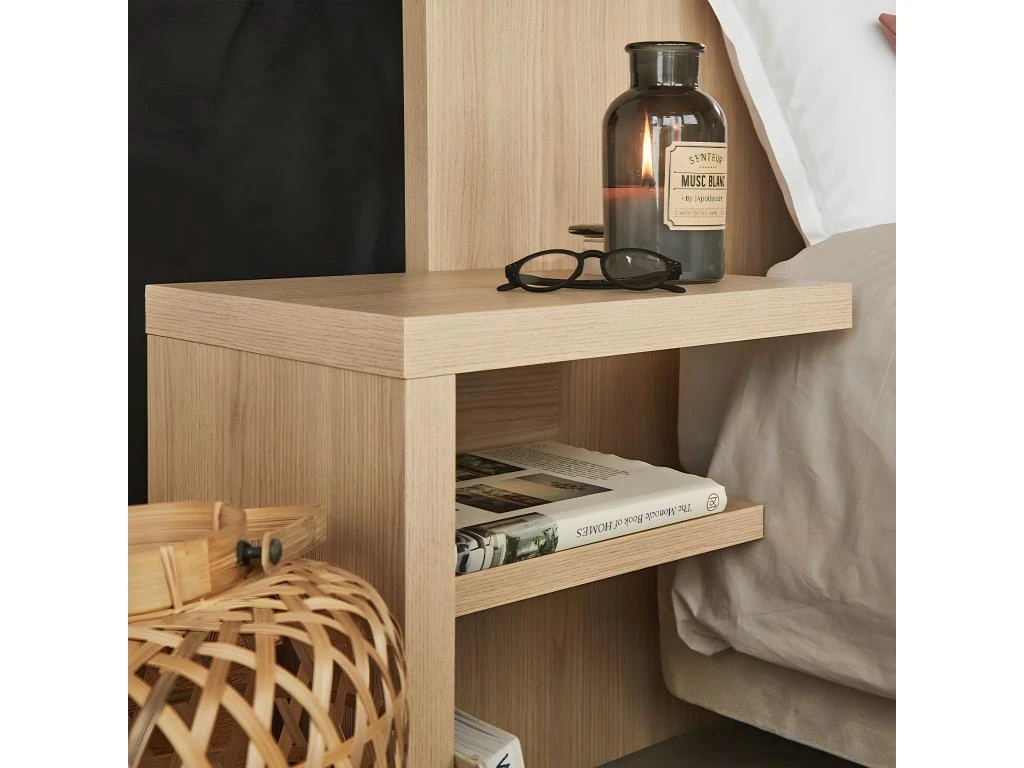 La tête de lit HUGO est un incontournable pour les chambres contemporaines. Sa finition chêne clair ou anthracite s’adaptent naturellement avec votre décoration d’intérieur. Grâce à ses 2 tables de nuit intégrées, vous bénéficiez d’espace supplémentaire confortable et esthétique. Disponible en 160cm, 180cm ou 193cm, la tête de lit HUGO trouvera aisément sa place dans votre chambre.