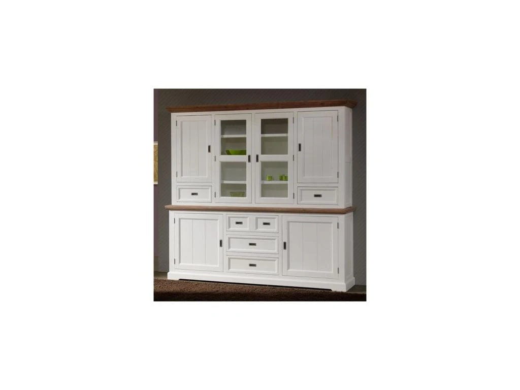 Réalisé en bois massif teinté blanc, ce vaisselier donnera à votre salle à manger l’ambiance d’une maison de bord de mer. Le bois prend tout son volume avec cette teinte lumineuse.