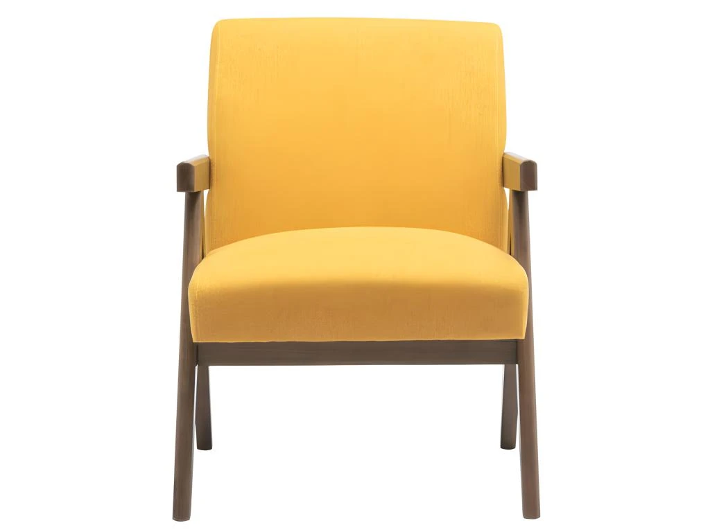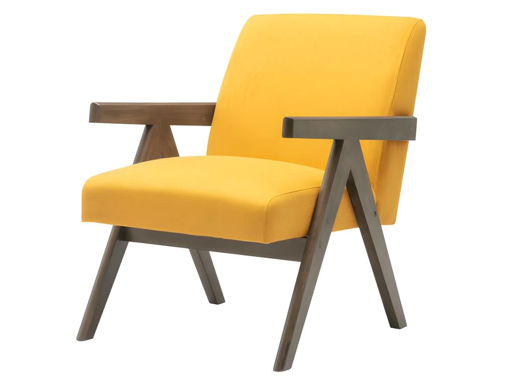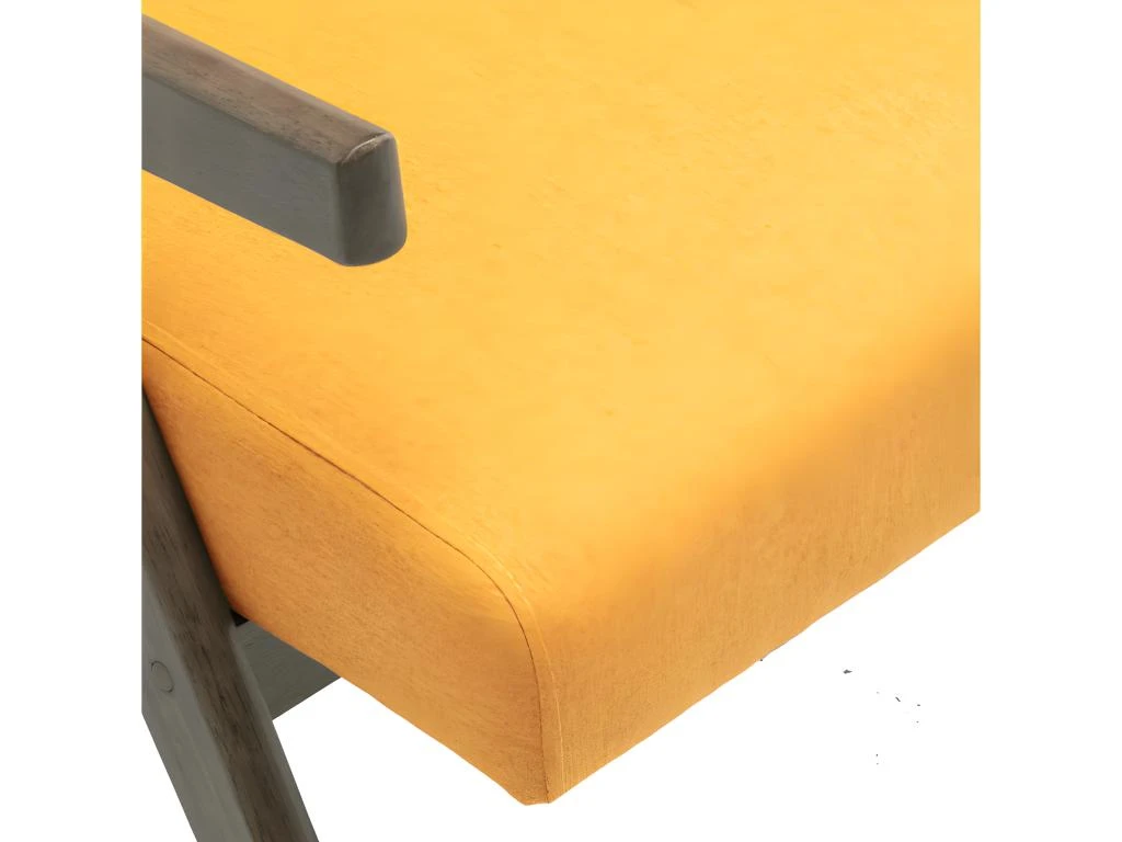 La structure en hévéa massif teinté noyer et le revêtement en tissu Moutarde lui confère un look très tendance.